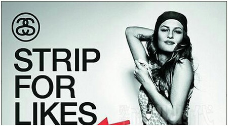 Marge X 是荷兰做流行产业公关活动整合营销公司,他替客户Stüssy Benelux做了个很大胆的App创意:只要你正面评价并分享至Twitter和Facebook,App上女模特儿就会脱衣服,转发、评论越多,衣服脱得就越多,直至脱光为止。