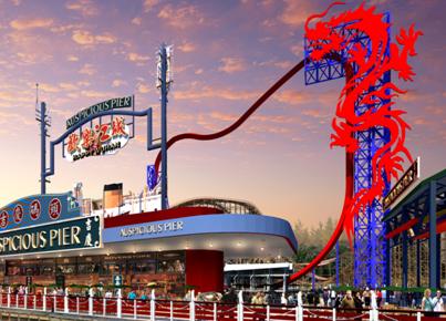 在形象上,塑造以摩纳哥赛车和机器人战警形象相结合的主题风格。一家主题商业设施点缀其中,为游客提供餐饮休憩服务。