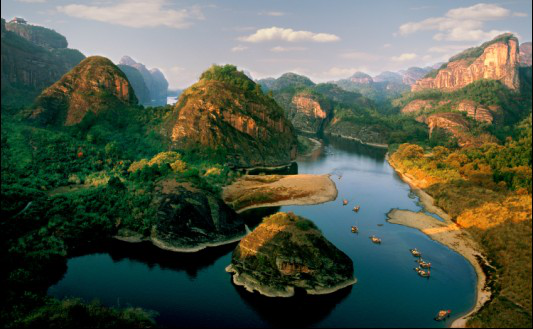 龙虎山位于江西省鹰潭市南郊16公里处,自古以“神仙都所”、“人间福地”而闻名天下,是我国道教的发源地和历史悠久的道教名山。她既是第二批国家重点风景名胜区(1988年)、国家森林公园(2000年)、第一批国家地质公园(2001年)、国家5A级风景旅游区(2012年),又是国务院确定的二十一处重点对外开放宫观之一(1983年)、全国重点文物保护单位(2001年)、国家历史文化名镇(2007年)。2007年联合国教科文组织评定为世界地质公园。2010年第34届世界遗产大会表决通过了“中国丹霞”作为世界自然遗产列入《世界遗产名录》。