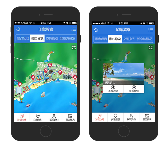 惠州巽寮湾度假区,进行了微信端智能导览图的搭建工作。游客通过线下扫描二维码或摇一摇,实现微信端自助收听语音讲解。