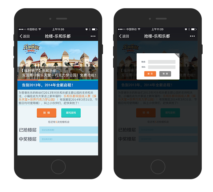 唐宋中国根据乐和乐都需求,为此独立策划设计微信端首场主题活动来吸引人们的眼球。唐宋中国为此策划微信主题活动“抢楼”,并取得了良好的成绩。