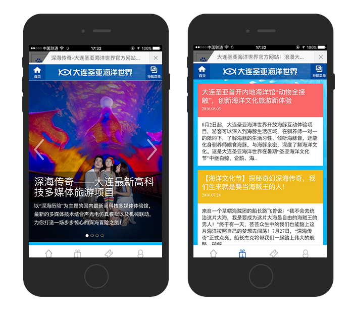 适应了PC端网络向移动网络发展的趋势,大连圣亚海洋世界移动网站应运而生,用来进一步塑造大连圣亚海洋世界品牌的形象。