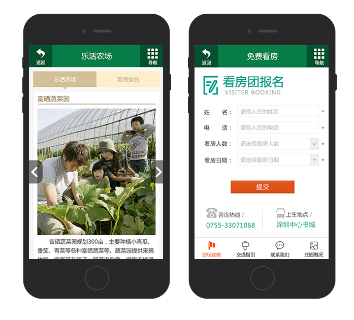 1.手机官网分为四大板块,旅游度假,地产置业,项目概览,功能导览已经完全与官网数据库打通,手机、PC端实时同步,一键更新,无需建立双层后台,资金、人力双向节省,打造新概念后台。