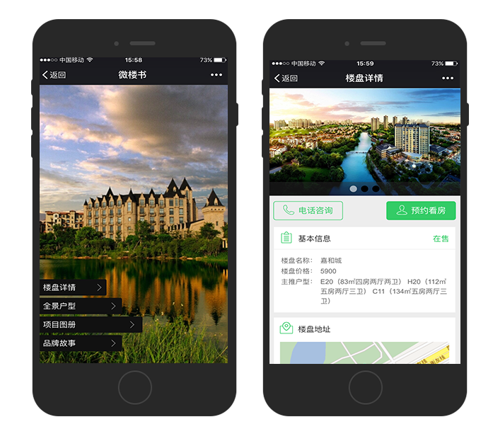 随着时代进程,用户使用网络的入口已经从移动手机等设备发展。广西嘉和集团紧跟用户走向,开发智慧移动设备平台。微楼书是体验感较强,符合现代人接受信息的习惯;通过网络传播,范围广,速度快;成本低,内容可更新;阅读方便,携带方便。在新的一轮竞争中,获得良好的品牌收益,借助强势的网络互动势力作为房地产营销的有力补充,以适应房地产寻求营销突破、全面推广的需求。