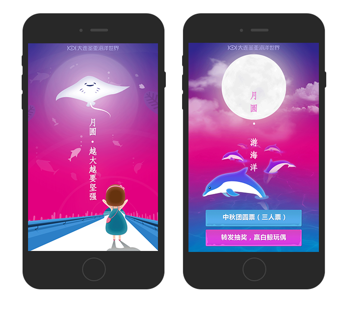 2、采用大连圣亚海洋动物的可爱形象迎合中秋主题。