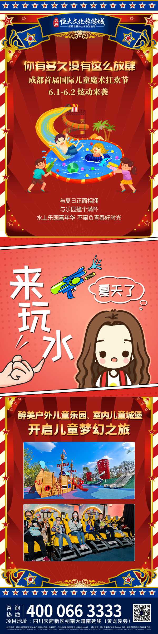 在全国布局的恒大童世界项目,作为服务亿万少年儿童的“全室内、全天候、全季节”的世界顶级童话神话主题公园,它是以中国文化、历史、神话传说为背景,在融合中国文化精髓和世界文明的基础上,采用世界顶级的游乐设施设备及技术,打造的全球顶级游乐胜地。位于湖南、贵州、江苏、河南、河北、湖北等地的恒大童世界项目将相继问世。