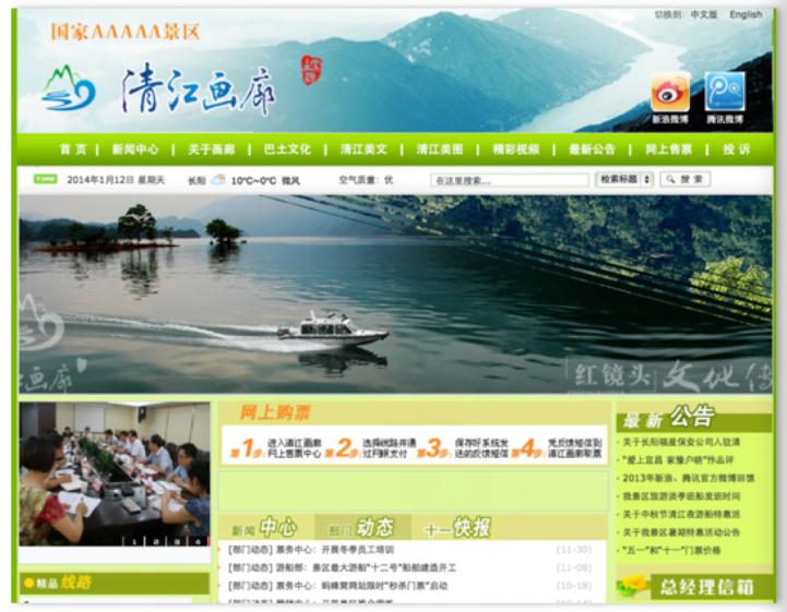 1.湖北清江画廊官方网站改版,区别于商业化网站,体现5A景区的人文与美景。