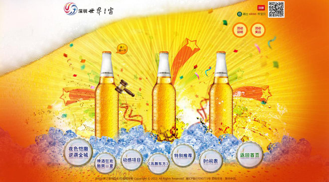 整个项目以“世界之窗国际啤酒节”建立专题迷你站,围绕啤酒元素创建“砸瓶有喜”在线游戏,以吸引更多的访客注册会员并参与游戏,体验啤酒节令人兴奋、开怀的热烈氛围。以该专题站为传播核心,通过微博、微信、新闻、论坛、SNS社区等平台进行软文及口碑宣传,并基于微信平台采用小活动方式与专题站游戏形成一个相辅相成的联动推广。活动信息全网地毯式传播吸引受众,网络活动交替进行回馈受众,不仅突破往年同期访问量且提高了访客转化率。