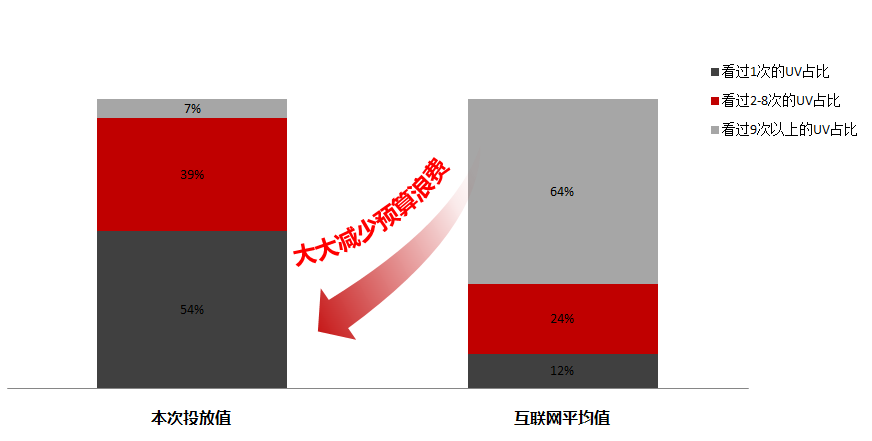 3、改变投放模式,恰当的频次控制使得本次广告投放有效曝光率达到93%,有效地利用了全部预算,同时也实现了用户覆盖最大化。