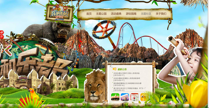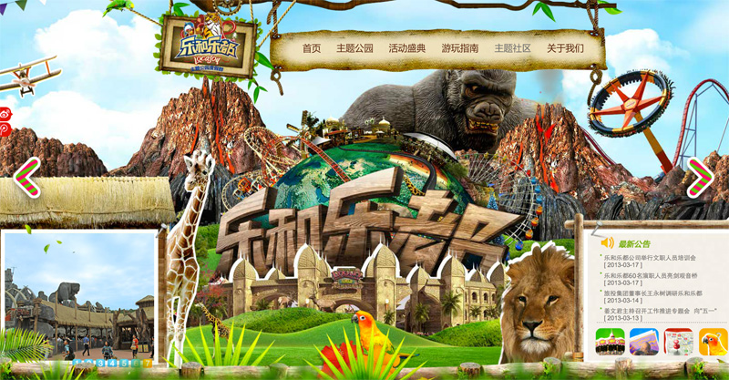 因乐和乐都多功能主题公园是一个综合性质很强的公园,它有着野生动物园区也有游乐区,因此在创意上一要传递一个新品牌的形象,另外也要把核心的希望游客的野生动物园的特点表现出来。