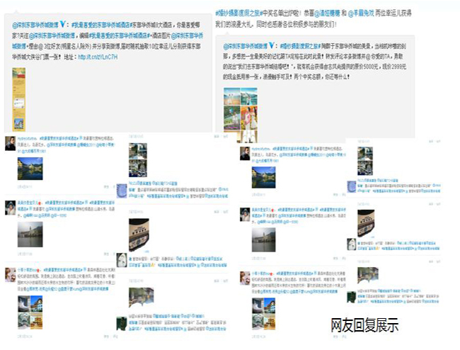 微博营销方面:结合品牌特点、推广主题以及时效热点对微博内容进行了精心策划和撰写,每日发布10条以上原创高质量博文,吸引粉丝参与互动,2个月内,东部华侨城品牌官方微博粉丝增加超过20000;与此同时,微博还配合线下活动、线上论坛活动、官网活动站点等发起微博活动共2次,吸引粉丝转发评论近5000人次,目标受众覆盖超过10万人次。