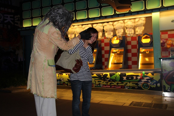 结果,虽然没进鬼屋,但路边着实也不少孤魂野鬼啊,“还魂僵尸”、“荒岛孤魂”、“惊悚木偶”、“鬼魅小丑”……各种恐怖啊,最讨厌的是这些鬼还喜欢藏在角落,看到人一来就突然跑出来吓人,哎,我的小心脏啊~~