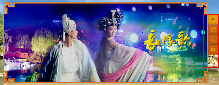 图中的画轴为网站动画播放系统,可用于动态资料的展示。此外,当用户鼠标点击动画中的碑海书林、芙蓉园等景区时,还可相应出现简单的图文介绍。