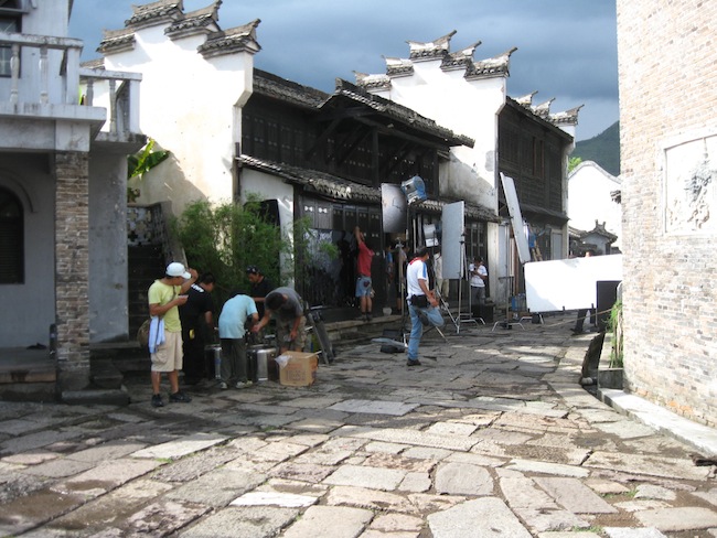 遇到了一波拍电影的剧组,不让靠近,有个女演员在那摆pose