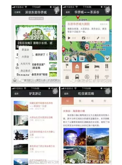 第五阶段,完成整体智慧旅游营销体系之移动环境应用开发工作。东部华侨城在开发完成app移动应用的同时,腾讯微信1.0应用平台申请的订阅号,微官网及微刊 ,就进行了深度开发。