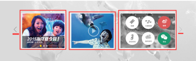 打开网页保持弹开的状态3-4秒后自动关闭,可通过设计稿鼠标滚动显示出第二屏内容;左1广告图可以通过圆点切换实现,广告图后台传几个显示几个点,有当前效果;便捷按钮:购票、时间、交通、服务、微博、微信等常用信息的便捷按钮链接到相关的页面。弹窗左右切换按钮超过三个的时候显示左右切换按钮,无的时候隐藏。来满足内容的承载量。