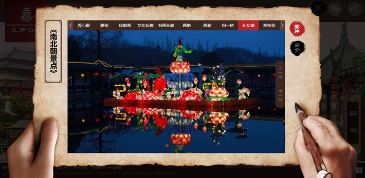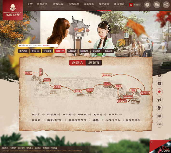唐宋中国站在用户角度,在内页上,呈现的景区信息中减免用户浏览疲劳度,在丰富的景区内容承托下,凸显九老仙都景区的可玩性和舒适性!