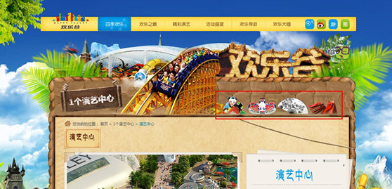 天津欢乐谷目前尚处于是品牌建设初期,大众品牌认知度较低,因此在网站创意设计中,唐宋中国巧妙融入了许多基于交互分享能力以及形成游客引导式传播体系的元素功能,帮助