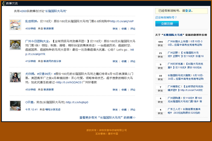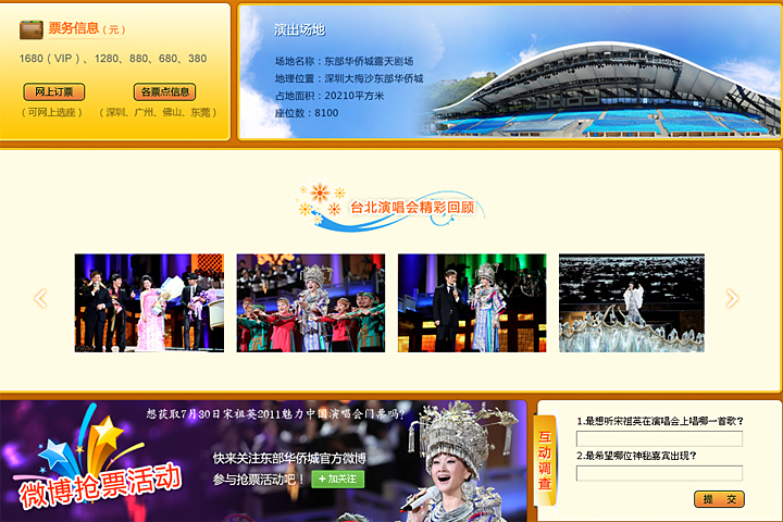 为了达到互动的效果,有微博在线互动,在线订票系统,在页面右侧增添我要分享按钮。