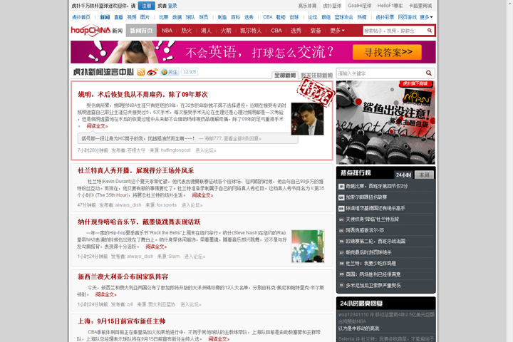 HOOPCHINA无招篮球是国内专业的篮球网站之一,是非常优秀的体育网站门户,里面有非常丰富的篮球专业知识和相关资料。