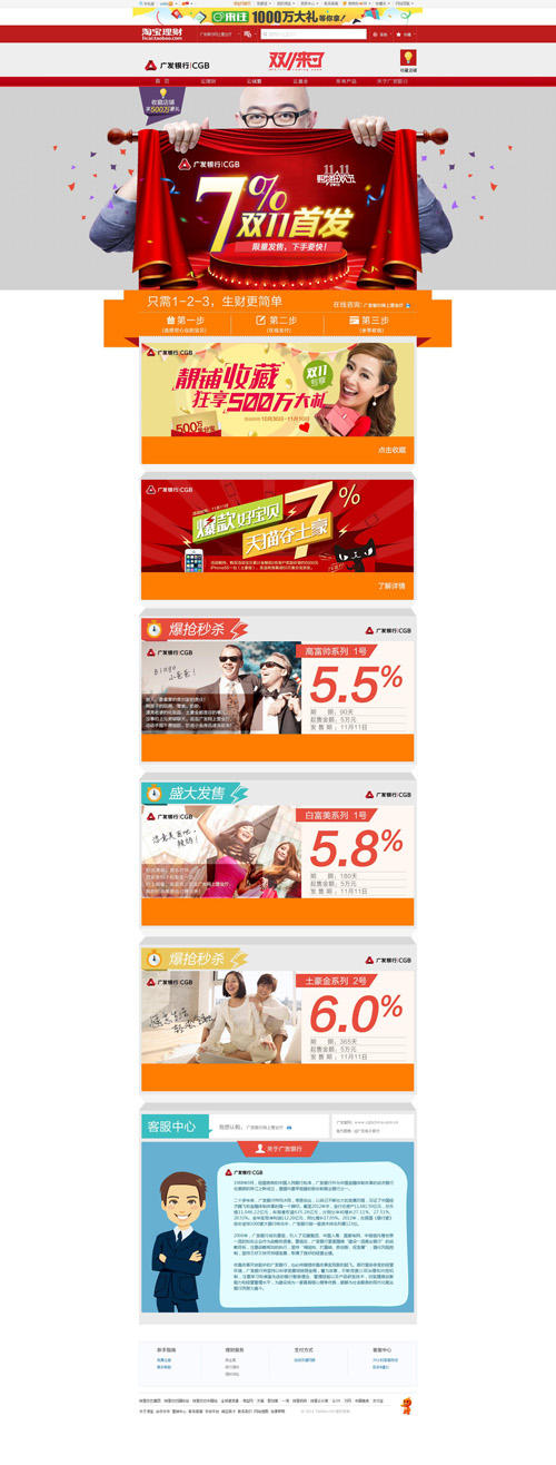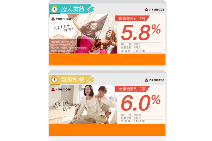 3、页面整体突出数字,意在强调理财产品的优势和特点,而左上角的时钟则给人一种强迫感,仿佛在提醒用户抓住机会,赶紧下手。