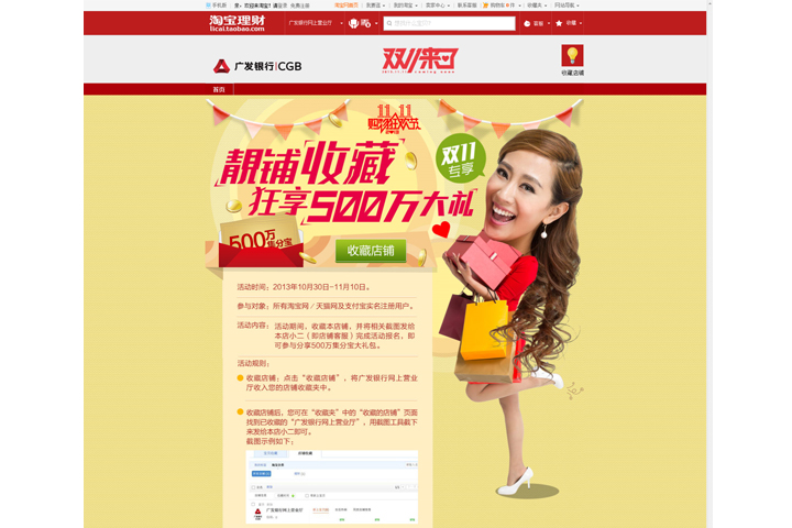 1、首页开头以魔术揭晓的方式直接将产品亮相,有效吸引用户眼球,突出理财产品的收益率,直截了当,以达到传播目的,提醒用户收藏有礼,贴心的同时又能提高店铺收藏率,有利于挖掘潜在用户。