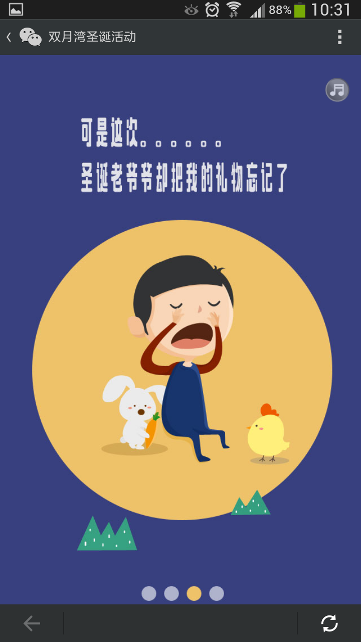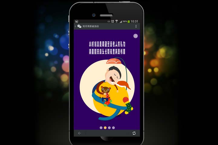 首先,以当季节庆圣诞主题来渲染主题氛围,让用户进来浏览一目了然,并在首页展示项目信息以及活动标题。