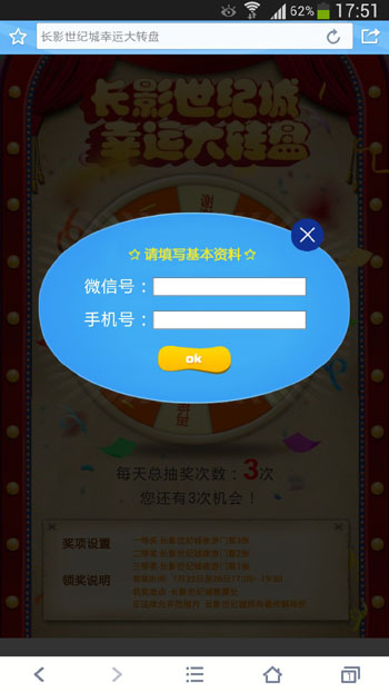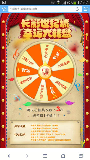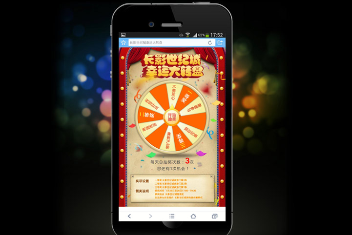 微信是现当下营销热点。长影世纪城着眼未来,积极维护线上用户,特举办微信活动“大转盘”。唐宋中国为此独立策划设计微信端主题活动来吸引人们的眼球。唐宋中国为此策划微信主题活动“大转盘”,并取得了良好的成绩。