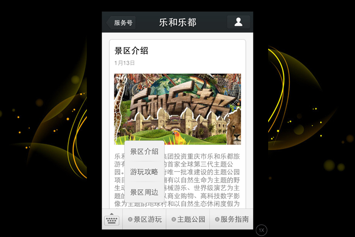 乐和乐都项目是重庆旅游投资集团旗下全资子公司——重庆市乐和乐都旅游有限公司打造的综合性多功能主题公园度假群。乐和乐都项目由一系列国际、国内顶级主题公园规划设计服务商、供应商和、建筑商历时4年精心打造,目前已被确定为重庆市政府唯一认可的的主题公园度假群。项目整体投资达30亿元,分为地球村、熔岩之城、娱乐天堂、重庆野生动物世界、野生世界两江假日酒店、世界级主题演艺六大版块。是西部首屈一指,国内领先的现代主题公园休闲度假群。