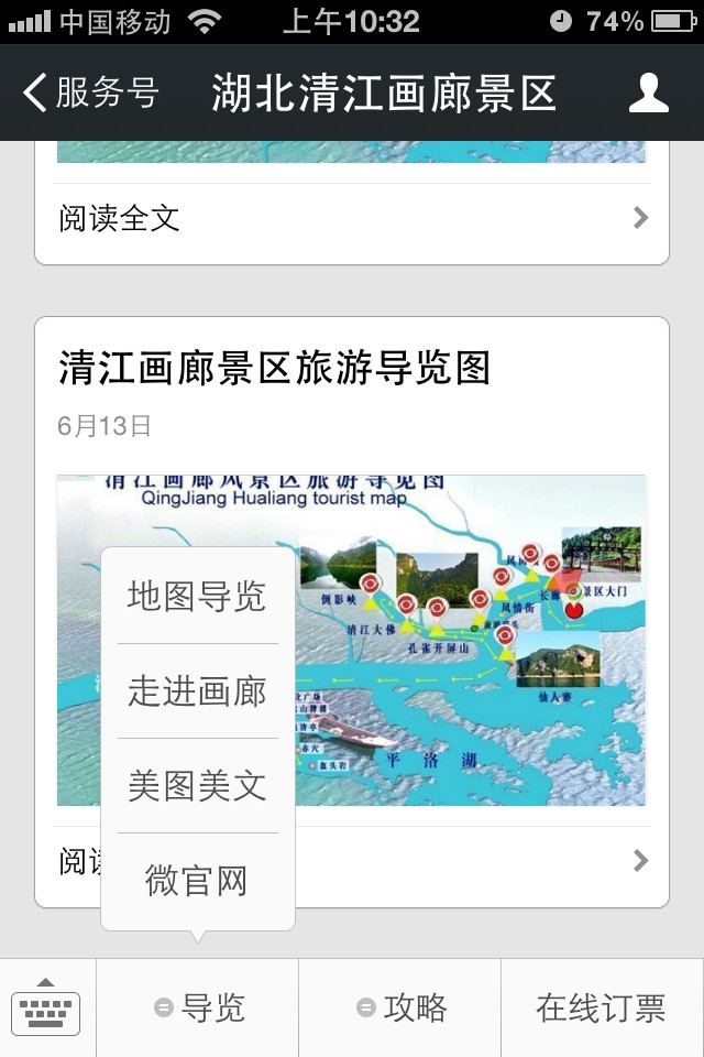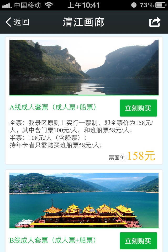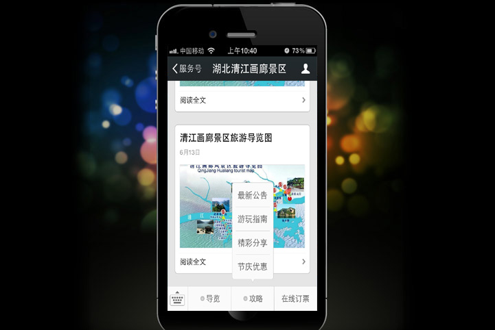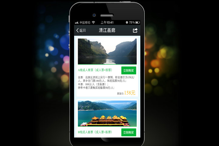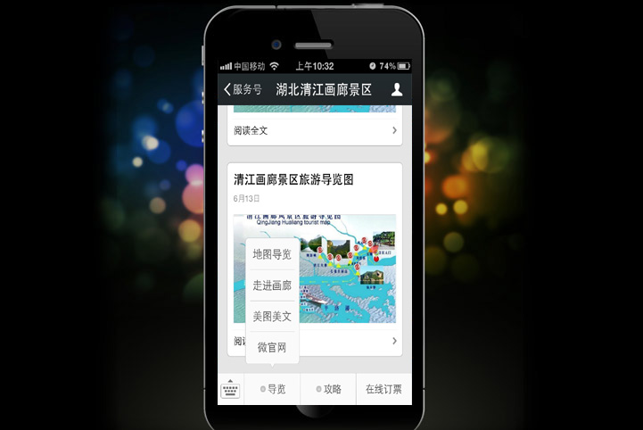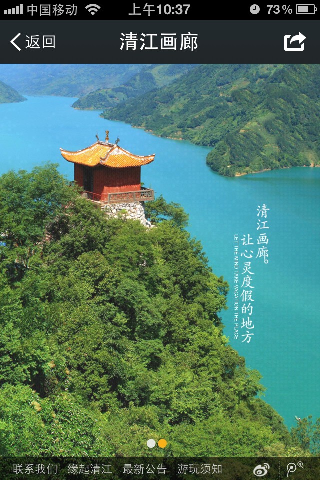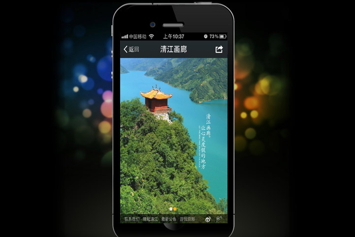 唐宋中国结合湖北清江画廊景区独特优势以及传播特点,独立构思策划手机端应用微信服务号功能开发以及微官网和微信支付的实现,二期可拓展语音导游,一对一导游预约功能。